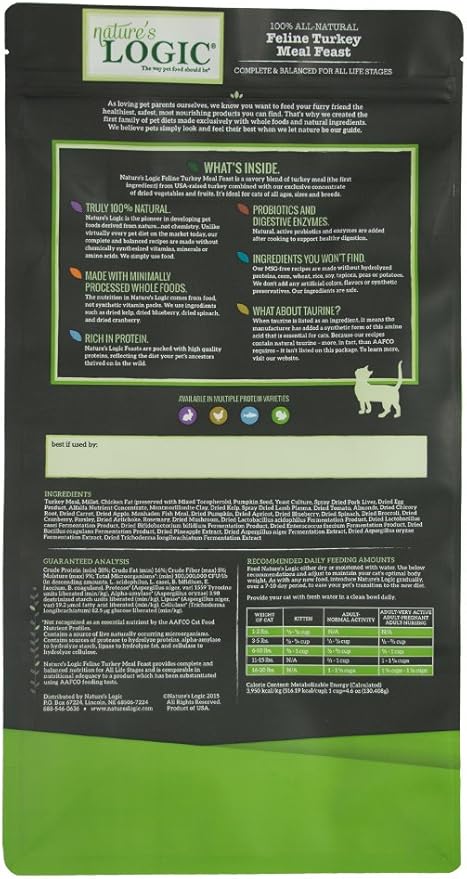 Nature's Logic Turkey Dry Cat Food (1 Pack), 7.7 lb