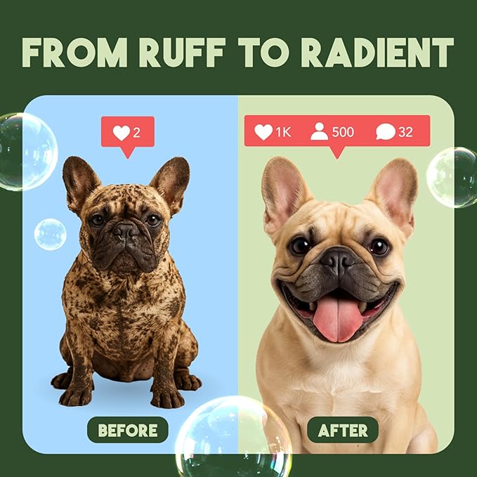- Gentle Cleanse - Hypoallergenic shampoo gently removes dirt while moisturizing your pet’s skin
