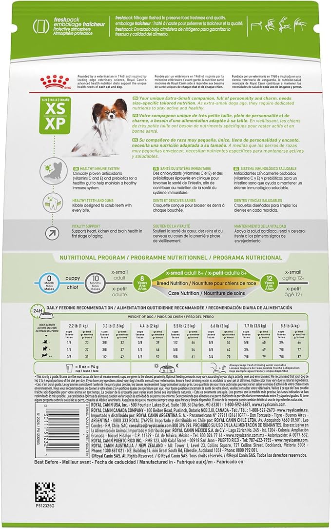 - X-SMALL BREED DOG FOOD: Royal Canin X-Small Adult Dry Dog Food for x-small dogs 10 months to 8 years weighing up to 8 lbs