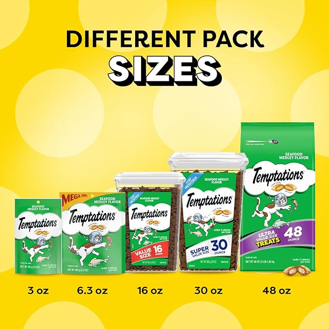 Temptations Classic Crunchy and Soft Cat Treats, Seafood Medley Flavor, 3 oz. Pouch (Pack of 12)