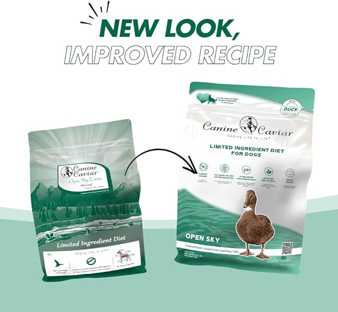 Canine Caviar - Open Sky: Duck & Teff Alkaline Dry Dog Food, Limited Ingredients, Gluten-Free, Based on Science & Research, Veterinary Alternative Diet (4.4 Pound Bag)