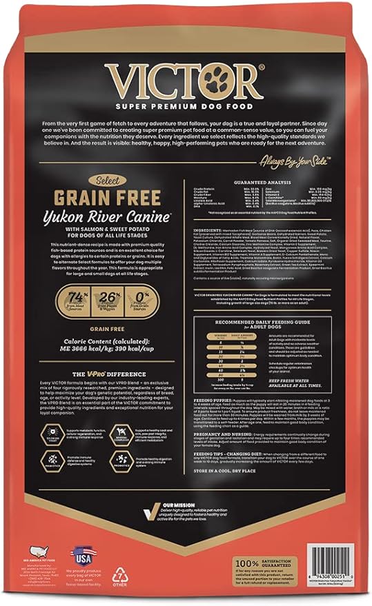 VICTOR Super Premium Dog Food – Grain Free Yukon River Canine – Supports Immune & Digestive Health for Dogs of All Life Stages – High Protein Dry Dog Food for All Normally Active Dogs, 30 lb