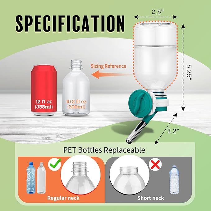 - ๐พ Mini-Sized Nozzle (10mm) is recommended for Guinea Pig, Ferret, Hamster, Bunny. / Made of BPA Free Material/ 10.2 oz Capacity.