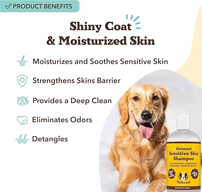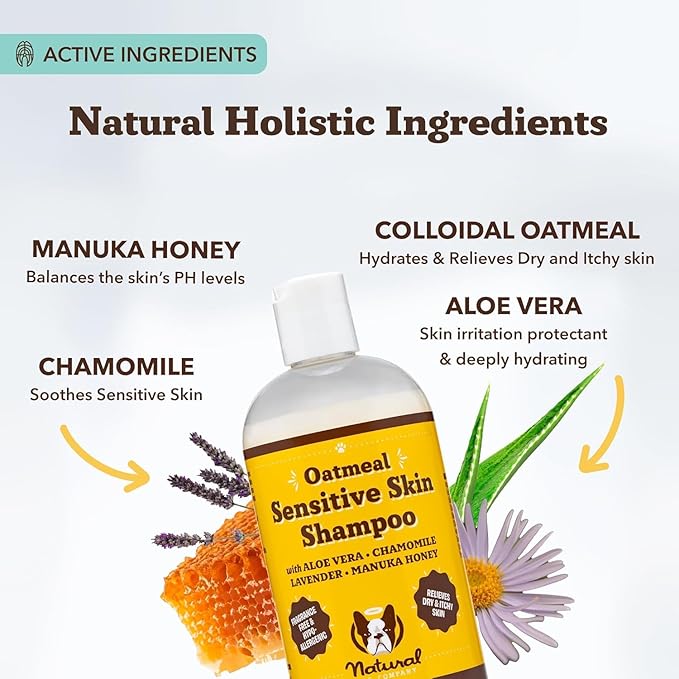 - Natural Itch Relief for Sensitive Skin – Formulated with aloe vera, jojoba oil, sea kelp, and essential oils to soothe dry, red, and irritated skin while gently cleansing your dog’s coat.