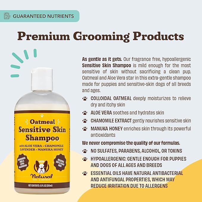 Natural Dog Company Itchy Dog Shampoo – Hypoallergenic, Paraben & Sulfate Free – Made with Aloe, Jojoba, Sea Kelp & Essential Oils – Soothes Dry, Irritated, Itchy Skin – Safe for All Dogs, 12 oz