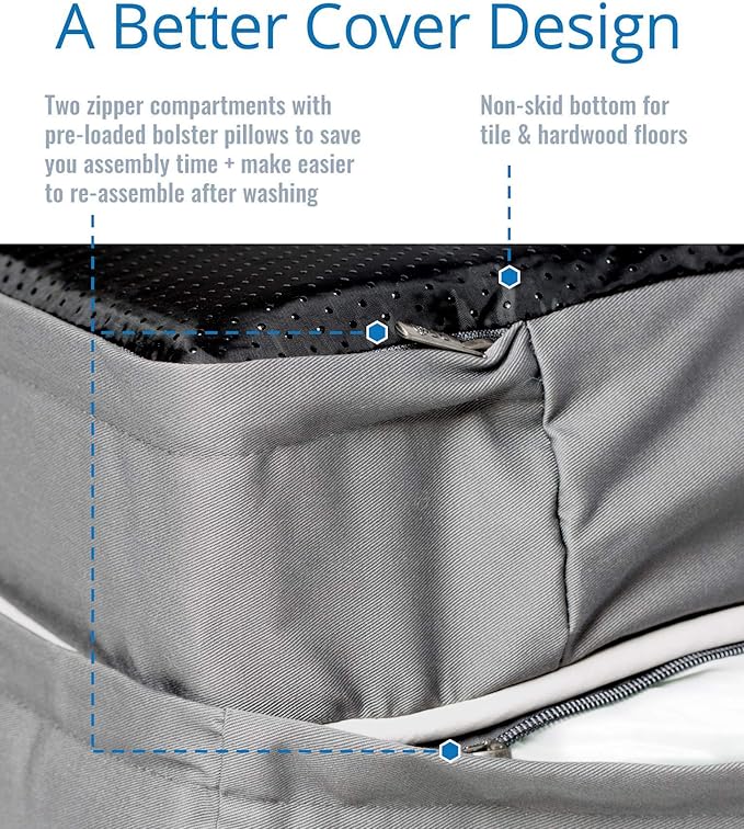 - SMART DESIGN: Base & bolsters provide optimal support & security. Water resistant & tear resistant cover. Non skid bottom. Blends in seamlessly with your home. Replacement covers available separately