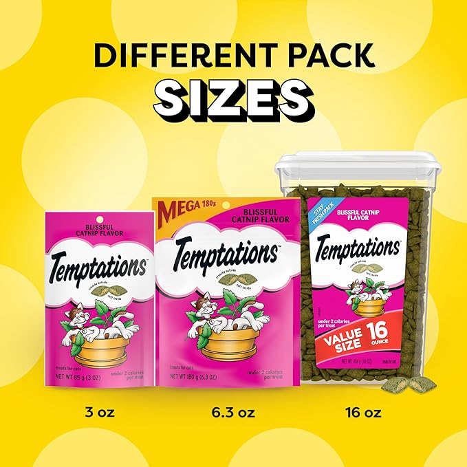 Temptations Classic Crunchy and Soft Cat Treats Blissful Catnip Flavor, 6.3 oz. Pouch (Pack of 10)