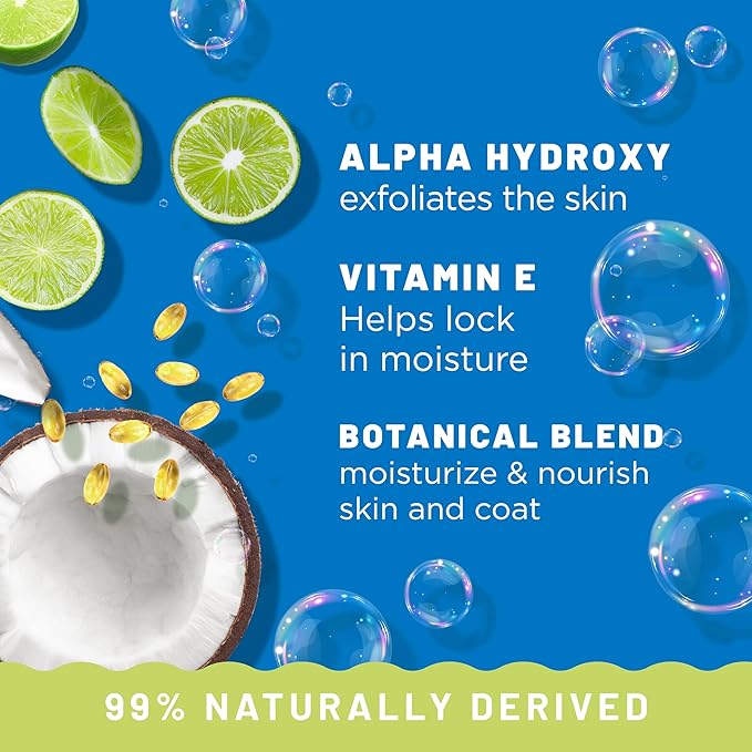 - Tropical Scent - Fresh scent of lime & coconut eliminates unwanted odors and lasts beyond bathtime.