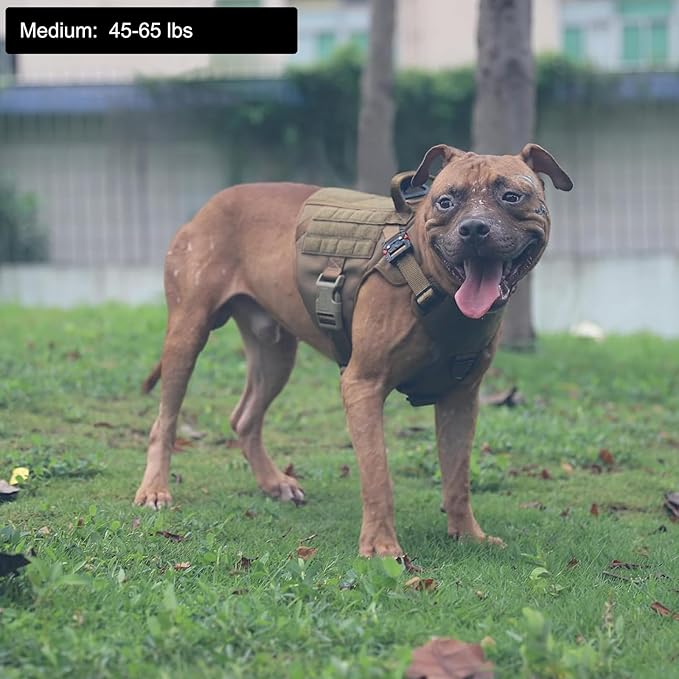 ICEFANG Tactical Dog Harness, Medium Size,2X Metal Buckle,Working Dog MOLLE Vest with Handle,No Pulling Front Leash Clip,Hook and Loop Panel (Brown,M (Pack of 1))