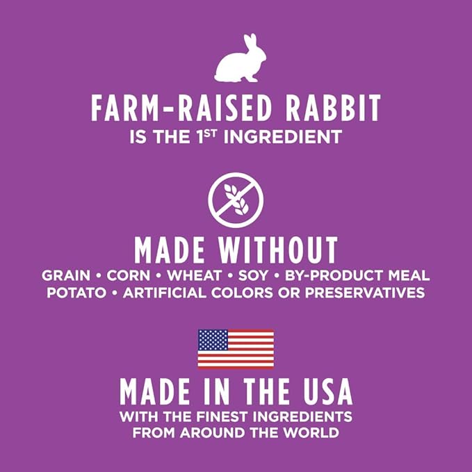- NATURAL INGREDIENTS: This grain free cat food uses responsibly sourced farm-raised rabbit as the first ingredient, paired with whole food ingredients for high-quality nutrition. This cat kibble contains no grain, potato, corn, wheat, soy, by-product meals, artificial colors, or preservatives.