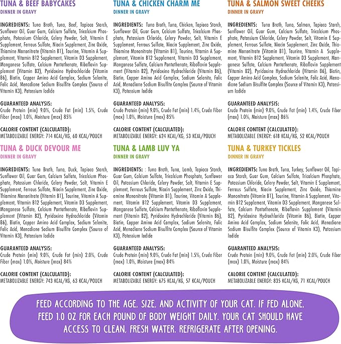 - Rainbow A Gogo Variety Pack! (3oz Pouch, Pack of 12) OMG, Six different flavors in one variety pack! Featuring premium proteins like tuna, chicken, salmon, beef, lamb, and duck in a tasty gravy