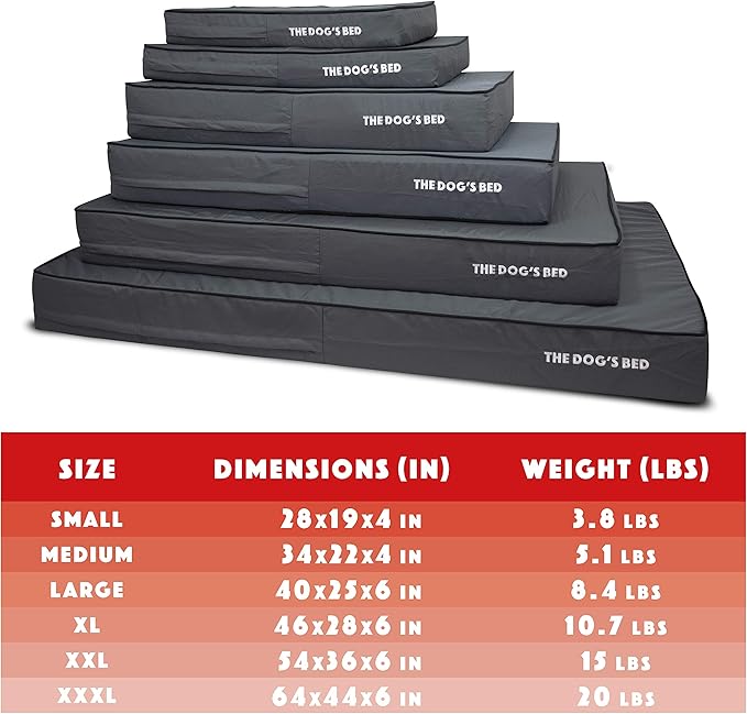 - XXL Grey with Black Trim (Easy Clean Cover) 54x36x6” waterproof orthopedic dog bed. Solid 2” high density, orthopedic memory foam over a solid 4” base of high stability support foam with covers designed so that your bed fits your home decor seamlessly and your dog can stay close to your family