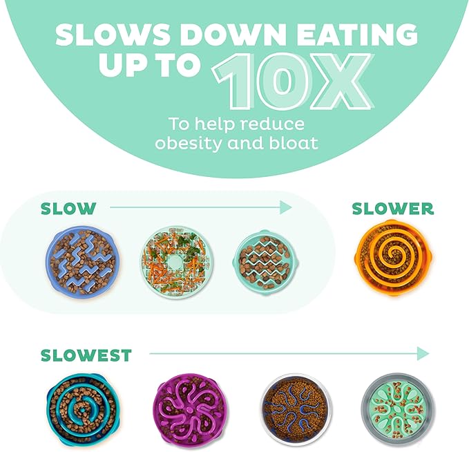 - Multiple sizes, maze patterns, and 3 SLOW levels to choose from – Slow, Slower, or Slowest – to slow your dog down as much as needed; pick the perfect size and design for your unique pet