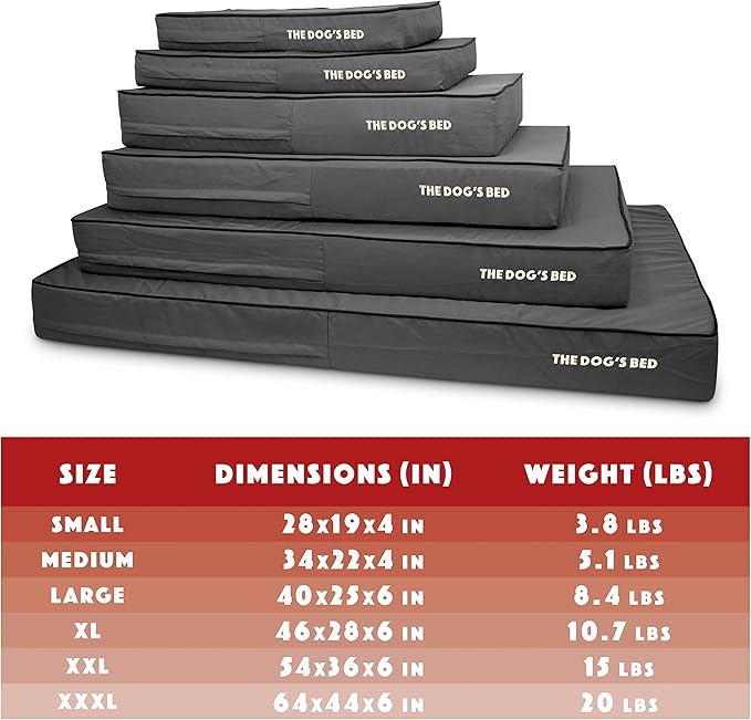 - Amazon's LARGEST DOG BED - XXXL Grey with Black Trim (Easy Clean Cover) 64x44x6” waterproof orthopedic dog bed. Solid 2” high density, orthopedic memory foam over a solid 4” base of high stability support foam with covers designed so that your bed fits your home decor seamlessly and your dog can stay close to your family