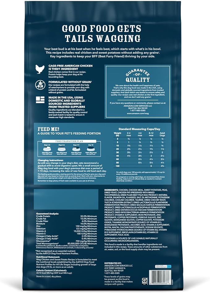 Amazon Brand - Wag Dry Dog Food Chicken & Sweet Potato, Grain Free 24 lb Bag