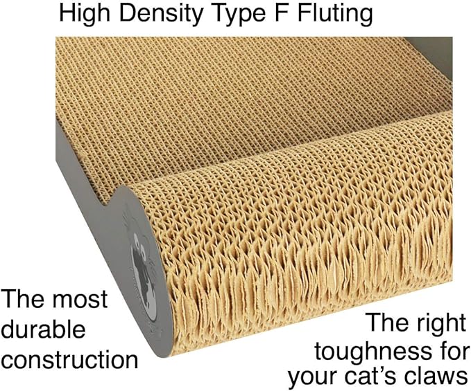 - Made with one of the most durable cardboard construction laminates, the tripple density F-Type fluted cardboard is sure to last; studies show that up to 50% longer than the lower density models in lesser cardboard scratch boards.