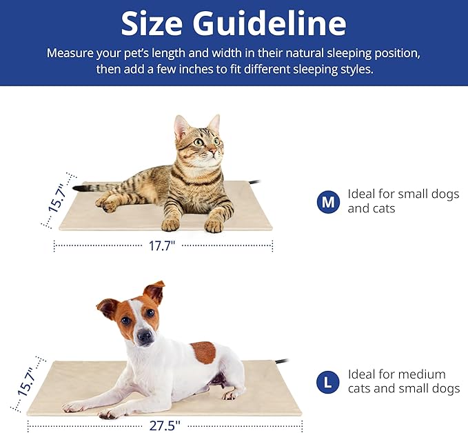 - Plug and play, provides optimal comfort at preset temperatures for dogs & cats (96-108℉)