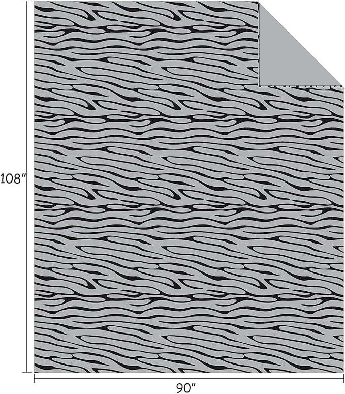- SIZES AND COLORS: Available in throw, twin, queen and king sizes.Throw size measures 50 by 60-inches, twin size measures 60 by 80-inches, queen size measures 90 by 90-inches, king size measures 90 by 108-inches. The elegant color is zebra print with a little gradient.
