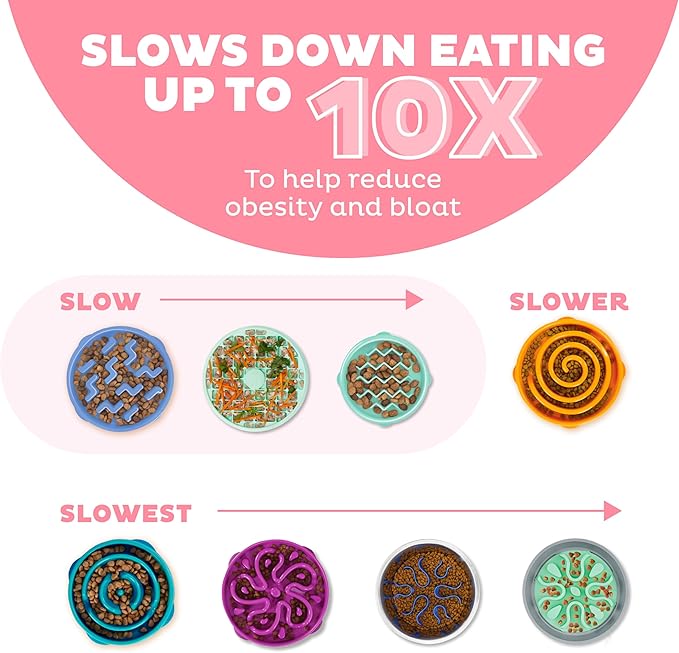 - Small slow feeder dog bowl – helps slow down eating up to 10X; this SLOW level feeder is designed for extra small to small dog breeds, puppies, or cats who need to slow their pace a little