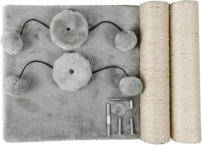 Dimaka 29'' Cat Scratching Post, Natural Sisal Rope Scratcher Post, Kitten Claw Scratch with 4 DanglingToy Balls for Large Cats (Grey)