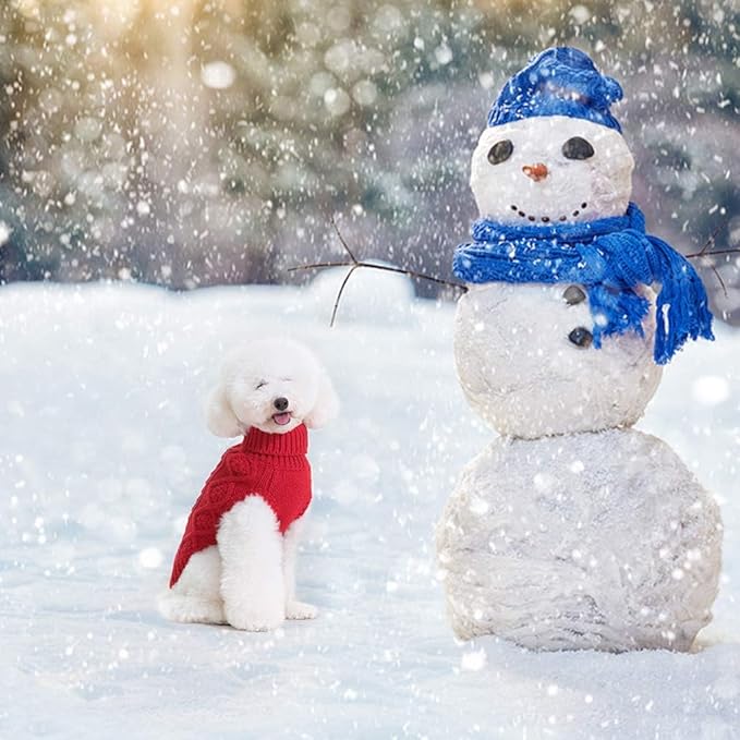 BINGPET Thermal Knitted Dog Sweater for Small Medium Large Dogs,Winter Dog Cat Coat Warm Sweartershirts Outfits,Classic Cable Knit Turtleneck Pullover Dog Jumper Coat Warm Sweartershirts