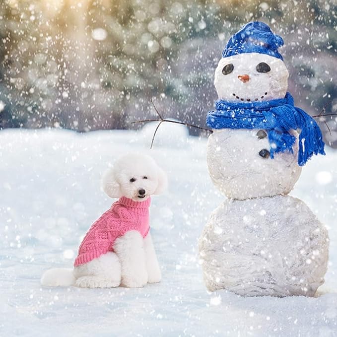 BINGPET Thermal Knitted Dog Sweater for Small Medium Large Dogs,Winter Dog Cat Coat Warm Sweartershirts Outfits,Classic Cable Knit Turtleneck Pullover Dog Jumper Coat Warm Sweartershirts