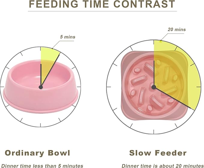 - Easy To Clean--For the slow feeder bowl has PP coating, cleaning of the bowl is also easy, it not only save your time but also keeps the bowls clearly.