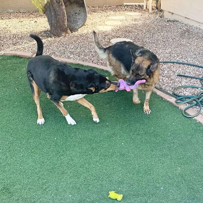 - Soft Plush Creates Chewing Satisfactions For Their Natural Instinct. Multiple Squeakers and Vibrant Colors Attracts Dogs' Attention.
