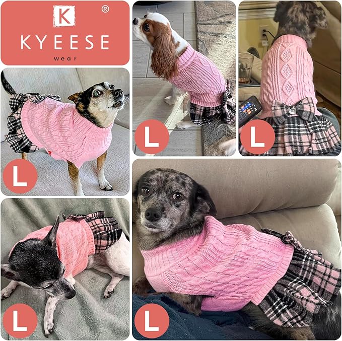 - Preppy Style: Fashion preppy look! KYEESE dog sweater dress with a chic gingham patchwork and a bow with sparkling rhinestones for a cute and eye-catching look. Always ready for any occasions, daily activities, photoshooting