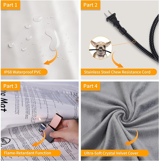 - Chew-resistant cord design with reinforced wires & double anti-bite protection, safeguarding against pets' chewing for uninterrupted warmth & safety.