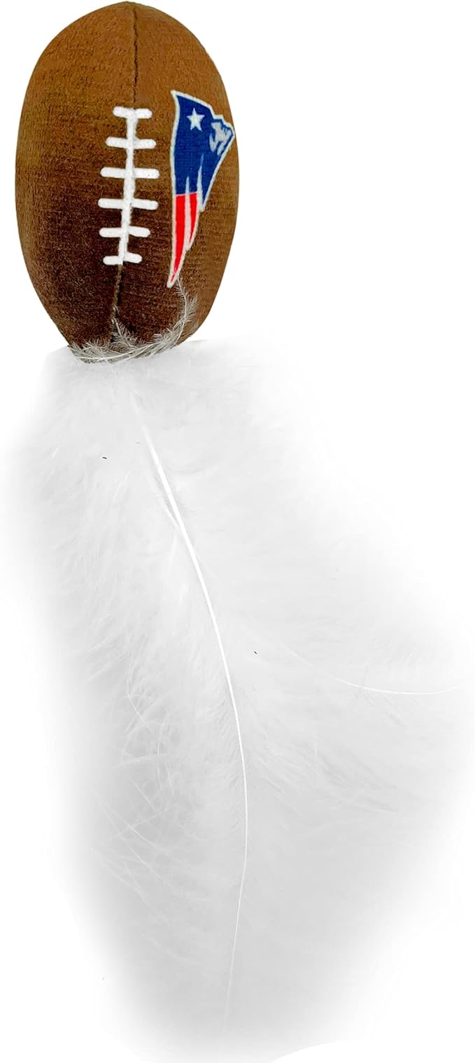 BEST PLUSH CAT TOY: NFL NEW ENGLAND PATRIOTS Complete Set of 3 piece Cat Toys filled with Fresh Catnip. Includes: 1 Helmet Cat Toy, 1 Football Cat Toy with Feathers & 1 Beer Bottle all with Team LOGOS