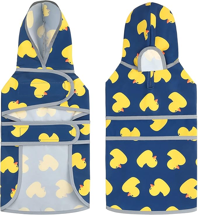 Dog Rain Coat for Large Dogs Waterproof Hooded Rain Jacket with Reflective Strips Leash Hole & Poncho Adjustable Fit (Duck,XL)