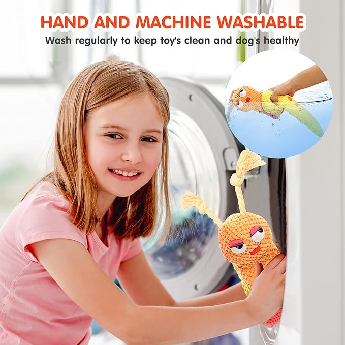 - Longer Squeak Toy: 26 inches! Untie the Velcro, and the snail transforms into a snake. Perfect for tug of war, twirling, or throwing. Squeakers and crinkle paper sounds keep dogs entertained, relieving anxiety and boredom