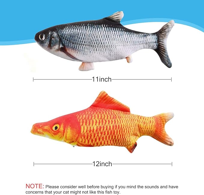 - ๐ Interactive Cat Toy - A floppy fish cat toy with a built-in touch sensor. When your cat touches the toy, the cat fish toy will automatically waggle and make a sound, attracting your cat to play and kick; if not touched in a while, the flopping fish will turn into "sleep" mode(โ Notice: Charge, turn on the switch and then slowly move the tail for operation the first time you use it).