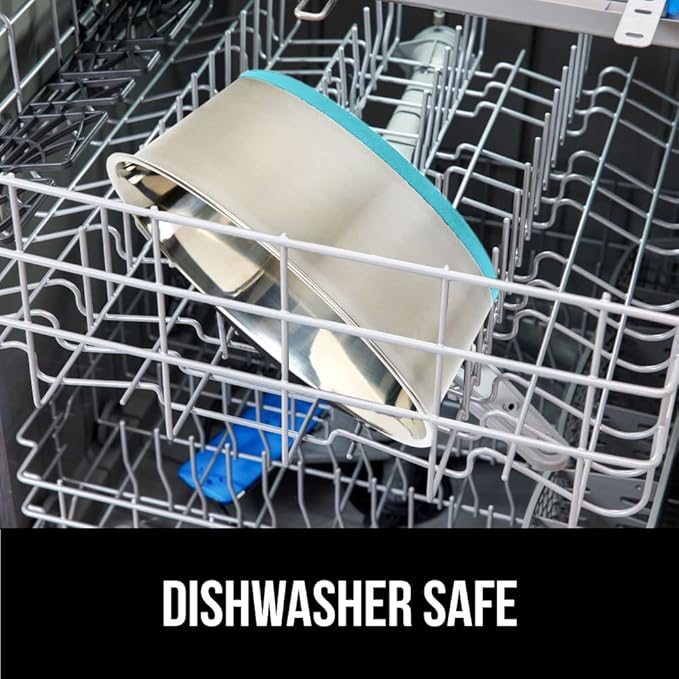 GORILLA GRIP Set of 2 Dog Bowls, Heavy Duty Metal Food and Water Bowl for Feeding Dogs and Cats, Dishwasher Safe Rust Resistant Stainless Steel, BPA Free Rubber Base, Holds 2 Cups (16 fl oz) Turquoise