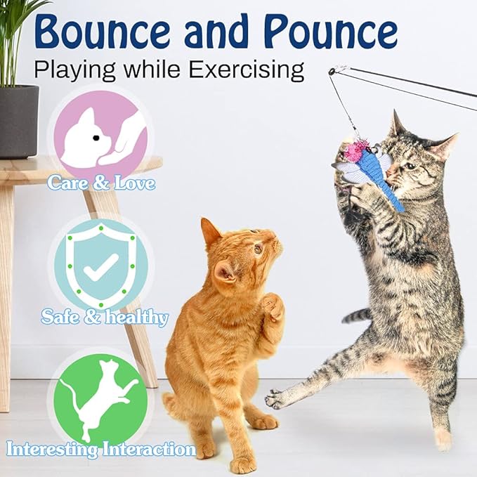 - All-New Upgraded Telescopic Rod: The cat wand is retractable from 16.3 in / 41.5 cm up to 41.3 in / 105 cm, different rod length helps your cats to flip, jump, pounce, chase and prowl this feather teaser toy.