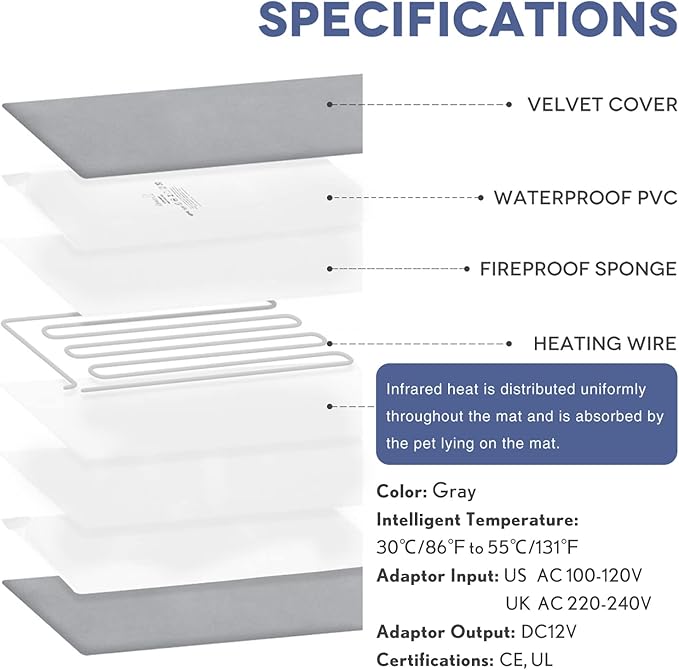 - 【Flame retardant and Waterproof PVC Envelope Enclosure】: Our product’s inner is a soft PVC envelope with waterproof and Flame retardant. This product has the highest-grade V-0 flame retardant capability. The outer soft fleece cover is machine washable. However, if your inner pad becomes dirty you can clean the pad with a damp cloth instead of immersing the pad into water. Because it has wires on it.