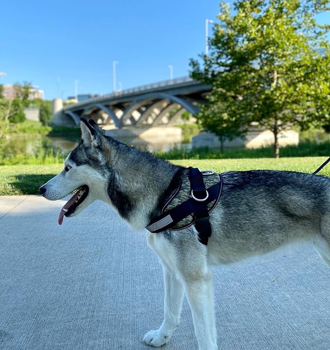 ShawnCo Essential Dog Harness, No-Pull Pet Vest with 3 Leash Clips, No Choke, Reflective, Adjustable and Padded, for Easy Walking and Training for Small, Medium and Large Dogs (Military Camo, L)