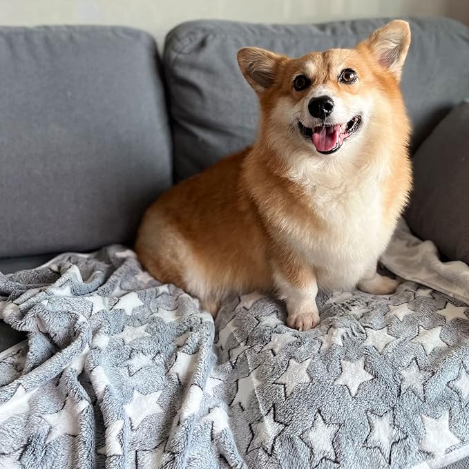 1 Pack 3 Puppy Blankets Cat Dog Blankets Super Soft Warm Sleep Mat Grey Star Cute Print Blanket Fluffy Fleece Pet Blanket Flannel Throw for Small Dogs Puppy Dogs Cats Large(40"x30")