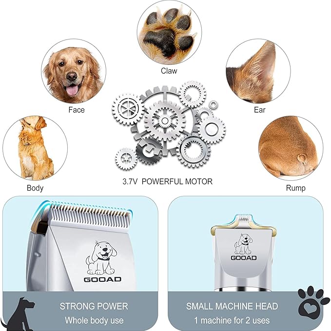 - 【Long Lasting Battery & LCD display】2200mA High Capacity Li-ion Battery, charging for 3 hours and can sustain use of 250 minutes.for reminding using and charging. Rechargeable design of this dog clipper, you don't have to buy replace batteries.