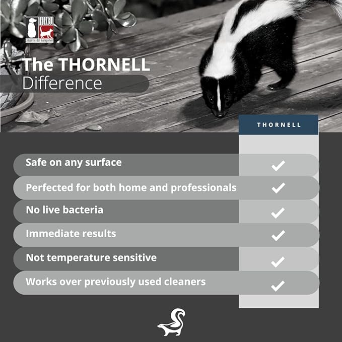 - Use What Your Veterinarian Uses: Thornell is the #1 provider of pet odor spray products to the veterinary industry in North America. Use what the pros use! This powerful skunk odor eliminator spray can be used safely on pets.