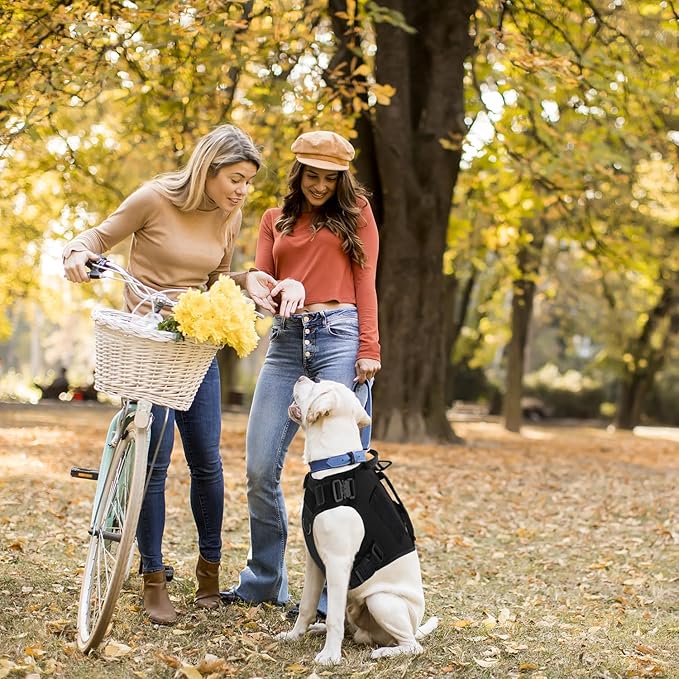 - [SAFETY CONTROL NO PULL HANDLE] A control handle on the top of the harness allows you to control your dog more efficient with fewer effort and with no harm to dog. It is practical when training dog to walk with you, to not pull/ rush, or to get in/ out of the car. Durable enough to lift dogs.