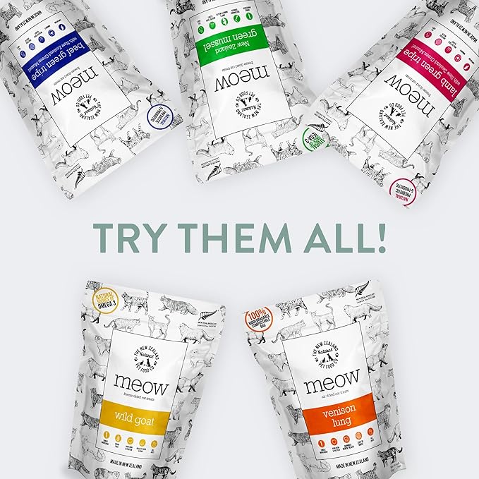 The New Zealand Natural Pet Food Co MEOW Freeze Dried Cat Treats - Beef Green Tripe with New Zealand Green Mussel, High Protein, Healthy Cat Snacks and Toppers, All Natural for all Life Stages, 1.4 oz