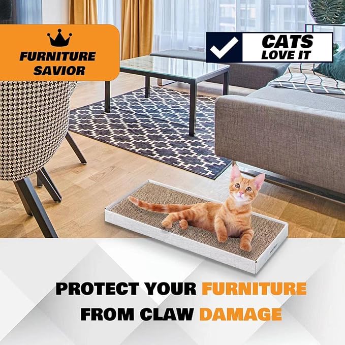 - 【Claw resistant &Long-lasting】 The textured scratch pad is both durable and replaceable. Each Corrugated Scratching pad is made of resilient corrugated cardboard that withstands quite a bit of scratching. There will be less cardboard pieces that come off when cat scratches it, thanks to high density upgraded cardboard
