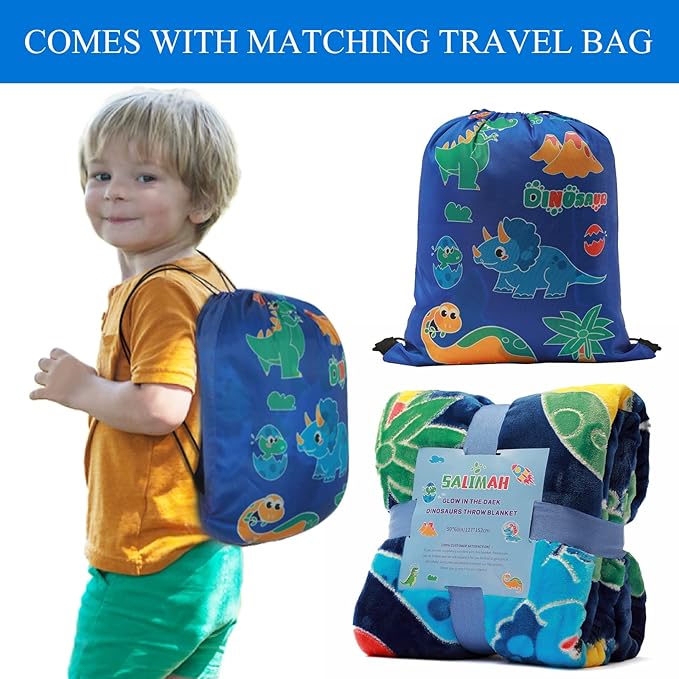 - [Blanket For Kids]:Our dinosaurs blankets 1-10 year old boy/girl birthday gifts or surprise your kids on Christmas, Halloween, Easter, Thanksgiving any occasion.Cool glow blanket inspires fun for kids and is the best guardian of the children at night