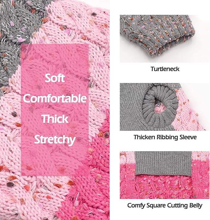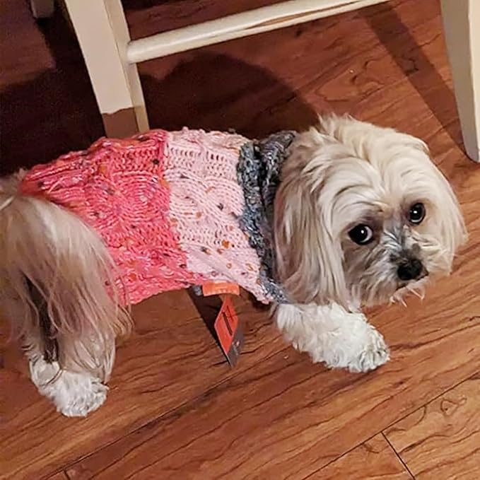 KYEESE Dog Sweater Color Block with Fuzzy Thread Knitted Turtleneck Pet Knitwear with dots in a Variety of Colors for Small Dogs Fall Winter Dogs Clothes, Pink, S