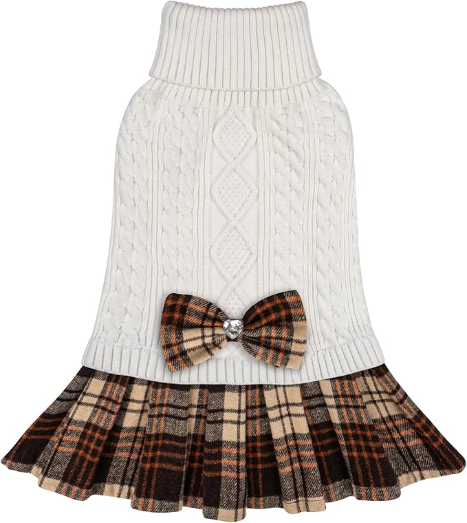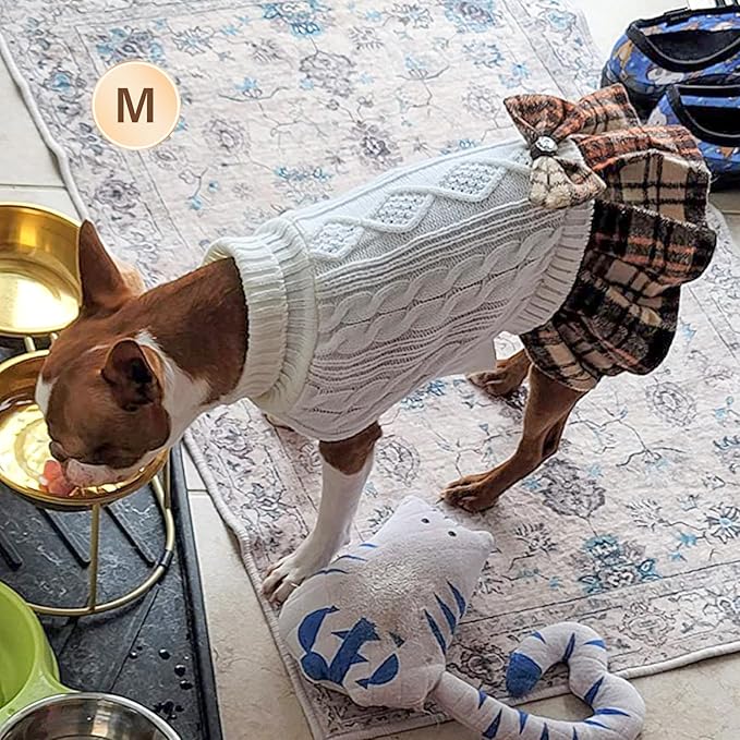 - Preppy Style: Fashion preppy look! KYEESE dog sweater dress with a chic gingham patchwork and a bow with sparkling rhinestones for a cute and eye-catching look. Always ready for any occasions, daily activities, photoshooting