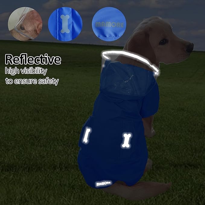 - REFLECTIVE AND SAFETY: Super bright reflective strips are used on the pouches,hoodie and back of the raincoat, enhancing your dog great visible and safe,easy to be seen when walking at night.