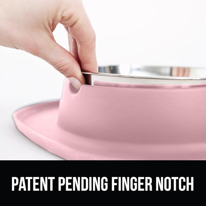 - BUILT TO LAST: durably designed silicone mat and stainless steel bowls are built to last; a convenient finger notch provides easy access to the dishes, making it simple to access and remove the bowls when filling with food or during cleaning