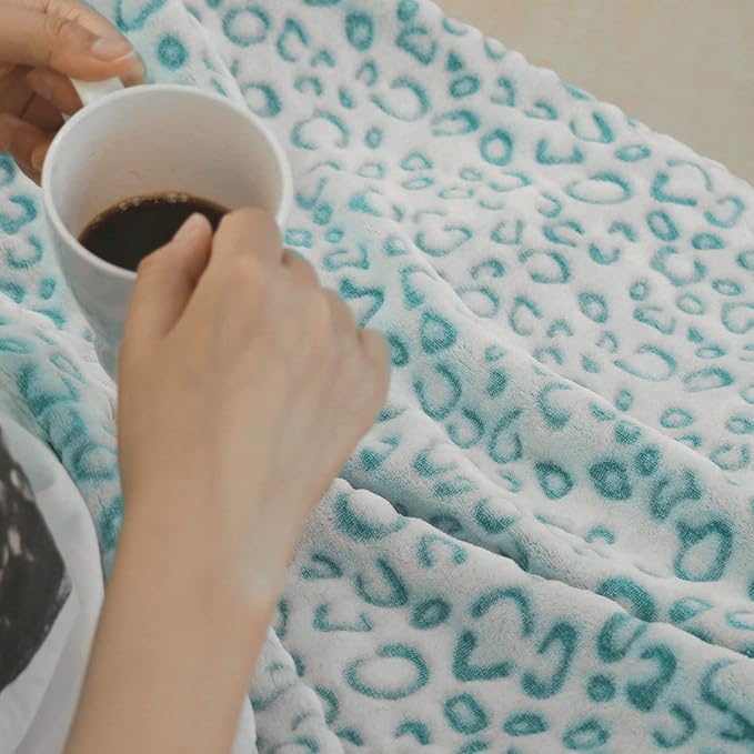 FY FIBER HOUSE Flannel Fleece Throw Microfiber Blanket with 3D Cheetah Print,90"X108",Lake Blue